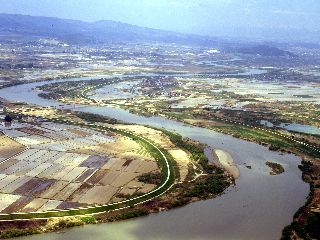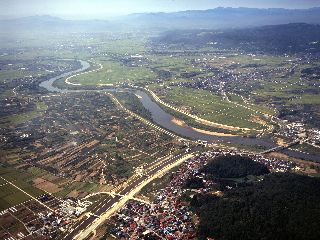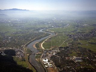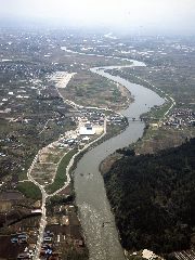 【題名】 村山市上空から見た最上川
