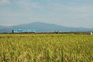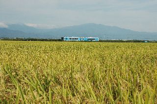 • 【題名】 田園地帯を走る左沢線電車
